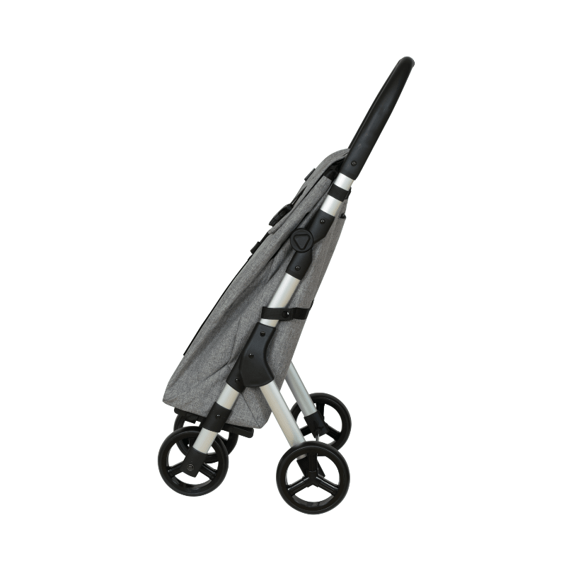 El marco está fabricado en aluminio ligero pero resistente, lo que hace que el carrito sea fácil de manejar, incluso cuando está completamente cargado. En la parte trasera de la bolsa hay un práctico bolsillo con cierre de velcro, ideal para guardar pertenencias pequeñas como el teléfono móvil, las llaves o la cartera.