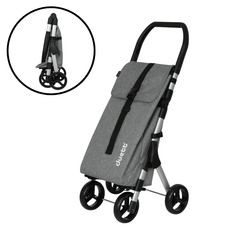 Muuvi Up es un carrito de compras moderno y espacioso, equipado con cuatro ruedas estables que brindan un paseo cómodo y seguro, así como un mango ergonómico ancho que facilita su maniobrabilidad. La bolsa de compras tiene una capacidad de hasta 46 litros y puede soportar hasta 25 kg.