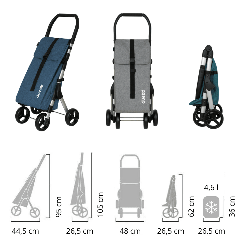 Como característica especial de este modelo, tienes la opción de añadir una bolsa térmica desmontable de 4,6 litros, que se acopla fácilmente en la parte trasera del carrito. La bolsa térmica es perfecta para productos refrigerados y mantiene tus alimentos frescos durante todo el camino a casa.