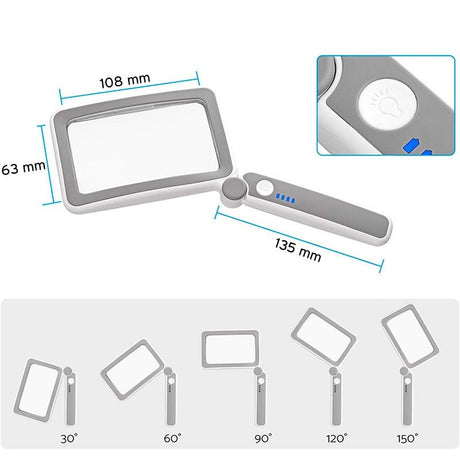 Foldbar læselup med LED-lys - 4x forstørrelse