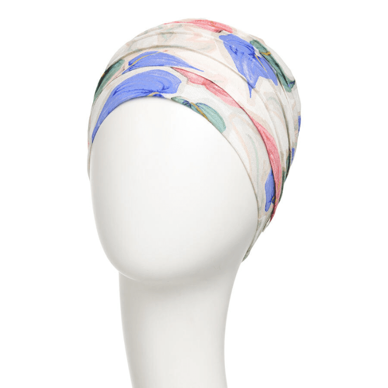 Blød og stilfuld hue med fine detaljer til dig, der har tyndt hår eller har mistet håret på grund af sygdom, medicin eller kemobehandling. Huen dækker hårgrænsen helt til og er ideel til hverdagsbrug - også hvis du er meget fysisk aktiv.