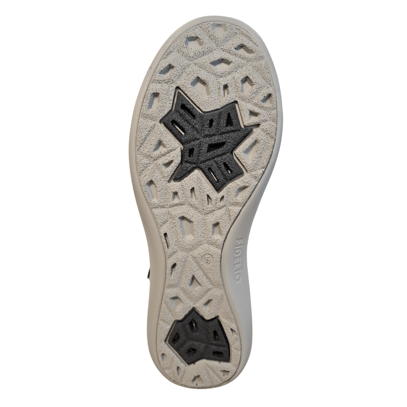 Skoen har en udtagelig, anatomisk fodseng med indersål af blødt naturlig kork, der giver god stødabsorbering og høj komfort ved længere tids brug. Den bløde polstring omkring forfoden og hælkappen sikrer også en behagelig pasform uden tryk, og den skridsikre gummiydersål giver godt og fast vejgreb.