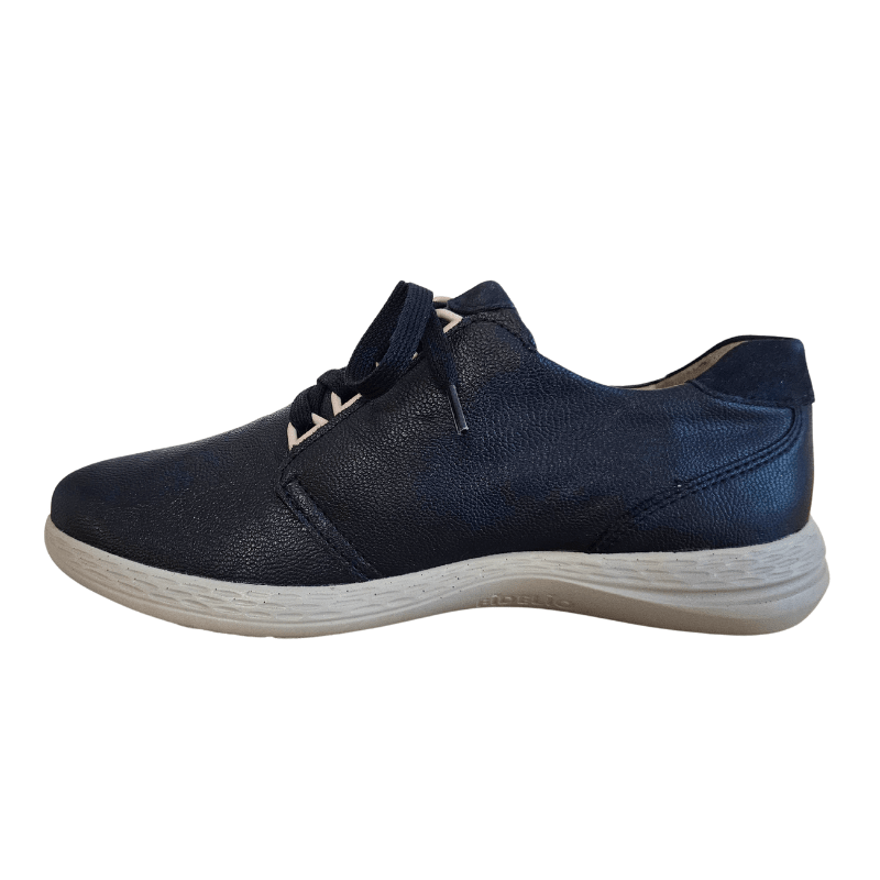 Mørkeblå Fidelio sneaker med overdel af læder og multi-stretch for optimal komfort, holdbarhed og fleksibilitet. Skoen har snørebånd og lynlås i siden og er velegnet til hverdagsbrug.