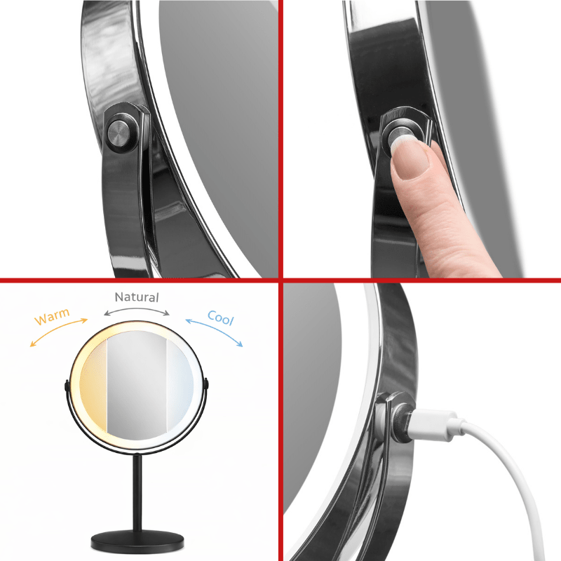Espejo de mesa con múltiples tonos de luz