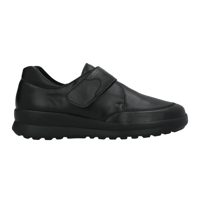 Zapatos Berkemann negros en cuero suave con forro de textil, que brindan comodidad y permiten una buena transpiración para el uso diario. El zapato se cierra con una correa ajustable de velcro, lo que te permite ajustar fácilmente el calce según tu pie.