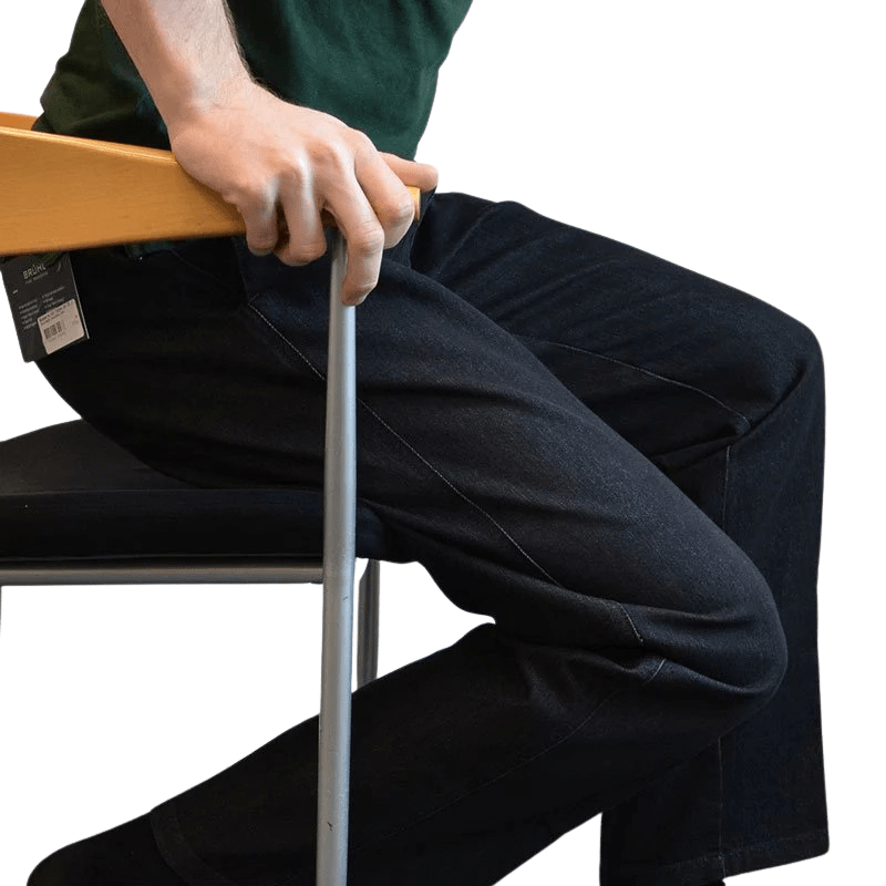 Disfruta de la máxima comodidad con estos jeans en color gris carbón/negro, diseñados con cintura alta y banda elástica. Su corte flexible y espacioso facilita su uso a personas en silla de ruedas o que requieren pañal, aportando comodidad diaria y libertad de movimiento. Son aptos tanto para hombres como para mujeres.