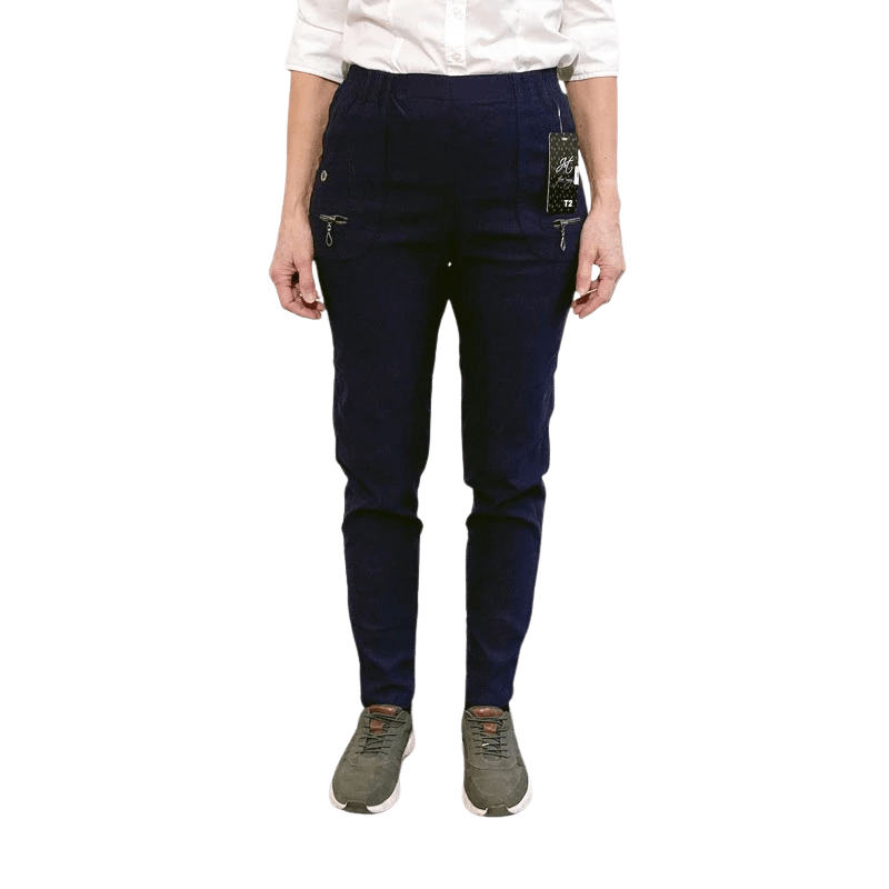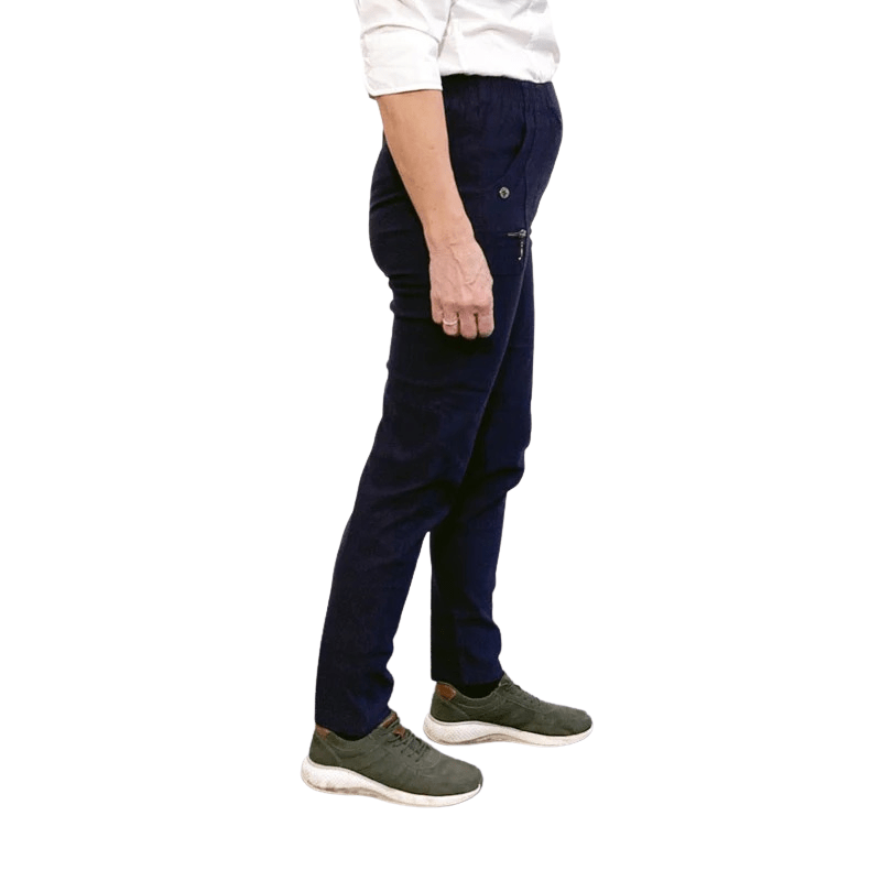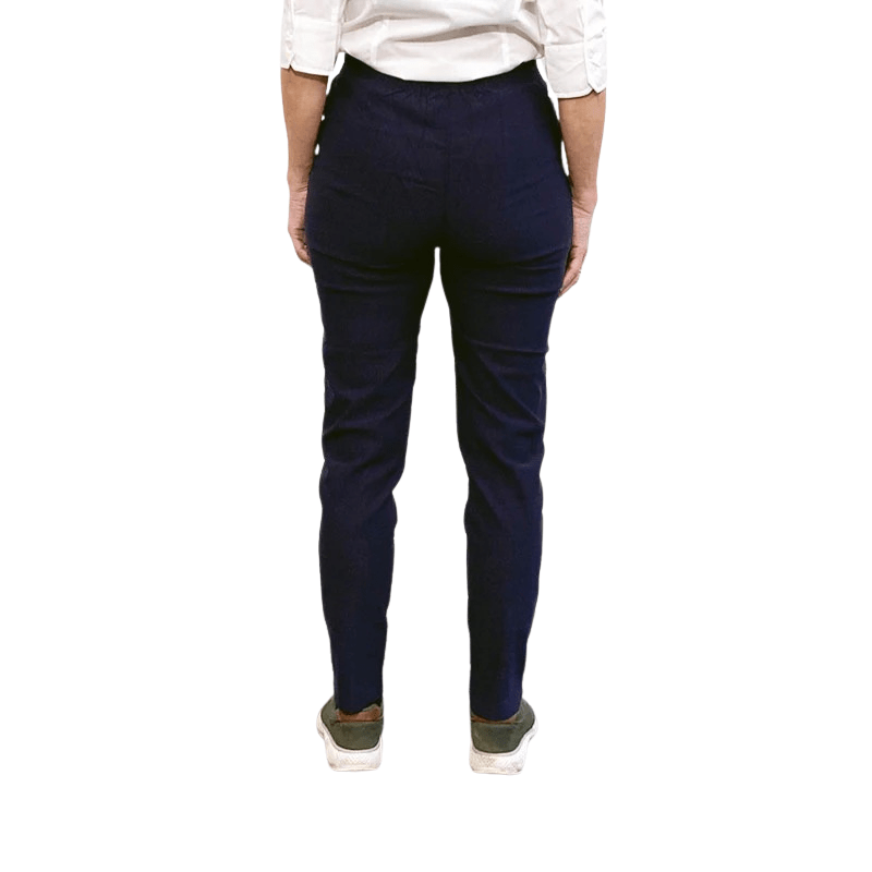 Elegantes y sencillos pantalones en un hermoso color azul marino clásico con cintura elástica cosida de Vanting Collection.