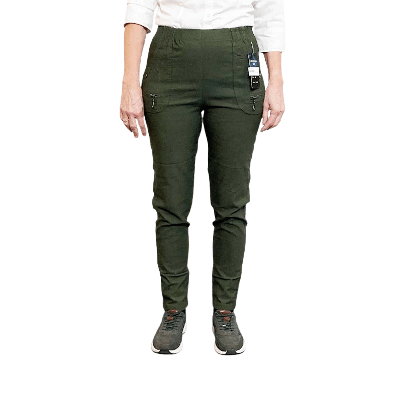 Pantalones de mujer con cintura elástica - Oliva