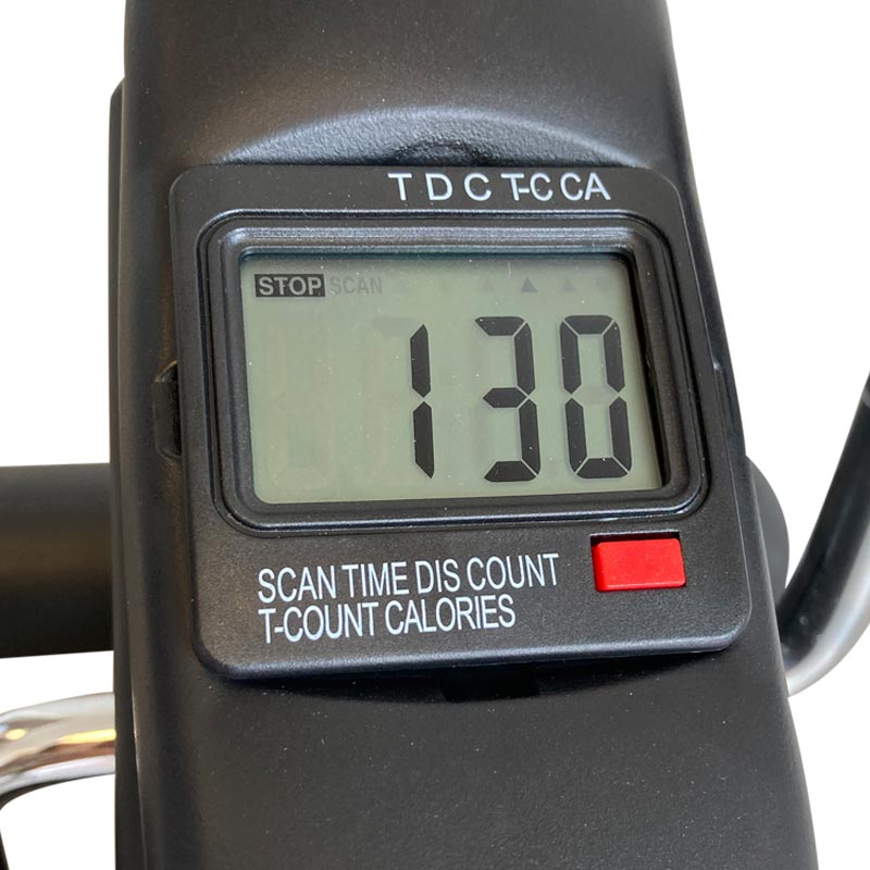 Versátil pedal para entrenamiento con pantalla digital donde puedes ajustar la resistencia y el nivel de dificultad con la manija de ajuste. La pantalla a pilas muestra la distancia recorrida, la duración del entrenamiento, las calorías quemadas y el número de vueltas.