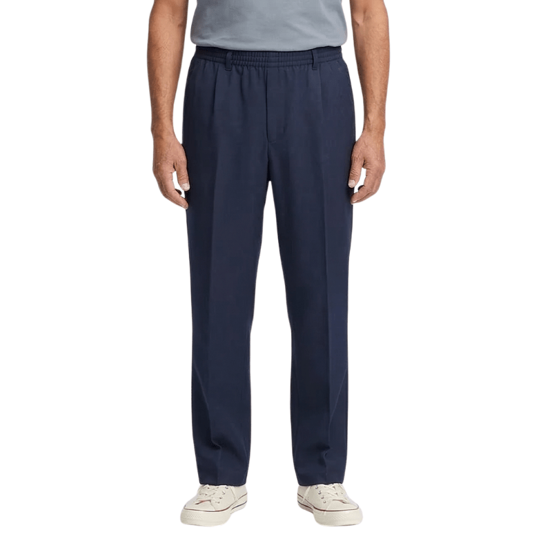 La suave cintura elástica en todo el contorno asegura un ajuste cómodo que sigue los movimientos del cuerpo sin apretar. Los pantalones tienen un pliegue delantero, que les da una apariencia elegante y clásica, y pueden usarse fácilmente tanto para el día a día como para ocasiones más formales.