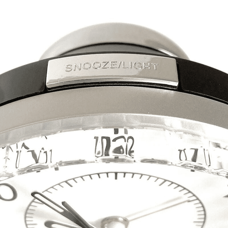 Cuenta con números grandes y bien visibles, lo que lo hace muy sencillo de utilizar. Para programar la alarma, solo tienes que girar el cristal hasta que la aguja roja marque la hora deseada. Si necesitas unos minutos más de sueño, la función Snooze te permite posponer la alarma 5 minutos con solo pulsar un botón. Además, al presionar la tecla Snooze también se enciende una suave luz en la esfera para que puedas ver la hora fácilmente incluso en la oscuridad.